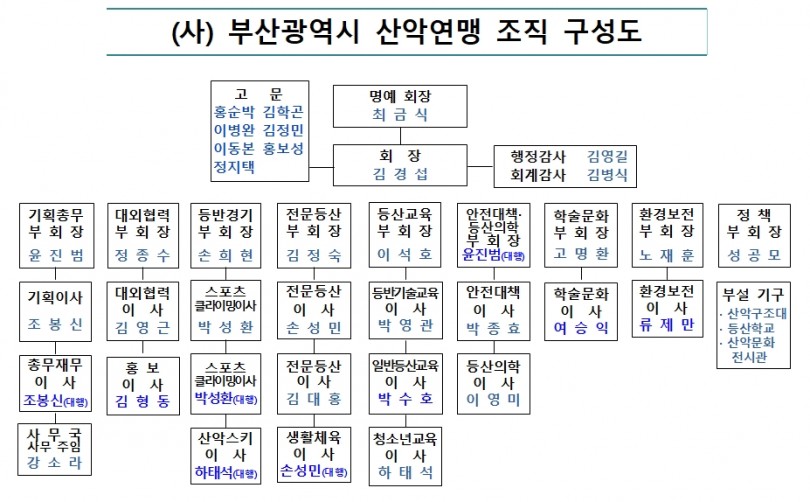 부산광역시산악연맹 조직 구성도 입니다. 작성자 정보 부산산악연맹 작성 8,498 조회 작성일 2019.06.05 16:09 컨텐츠 정보 본문 2019년 6월4일부터 시행되는 부산광역시산악연맹 조직 구성도입니다 SNS 공유 관련자료 이전 제32회 부산광역시장배 전국 금정스포츠클라이밍 대회 출전 순서 작성일 2019.06.14 다음 부산산악연맹 창립 50주년 기념 신루트 개척 원정대 및 대장 모집 작성일 2019.05.28 댓글 0개 등록된 댓글이 없습니다. 로그인한 회원만 댓글 등록이 가능합니다. 목록