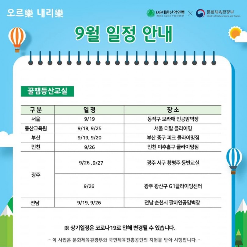 ✔오르樂 내리樂 9월 일정 및 참가신청 안내
