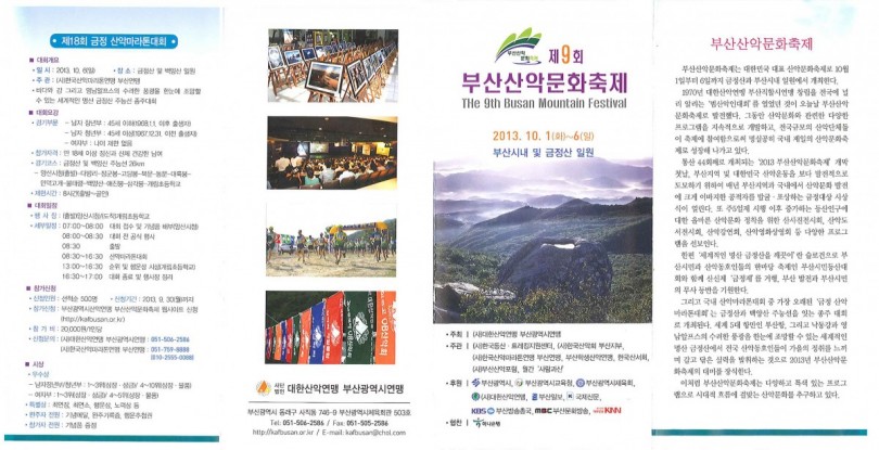 '제9회 부산산악문화축제' 주요행사 개요 리플릿 작성자 정보 부산연맹 작성 8,986 조회 작성일 2013.09.26 16:04 컨텐츠 정보 본문 제9회 부산산악문화축제 주요행사 개요 리플릿 입니다. 산악 동호인 여러분들의 많은 참여 바랍니다. SNS 공유 관련자료 이전 '산사진 및 산악도서 전시회' 도록 배포 안내 작성일 2013.09.26 다음 2013 금정대상 수상자 선정결과 공지 및 제44회 금정대상 시상식 개최 안내 작성일 2013.09.25 댓글 0개 등록된 댓글이 없습니다. 로그인한 회원만 댓글 등록이 가능합니다. 목록