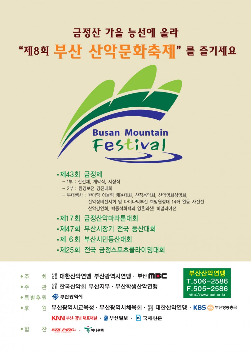 10월 6~7일 제8회 부산산악문화축제 작성자 정보 부산연맹 작성 8,692 조회 작성일 2012.10.07 01:09 컨텐츠 정보 본문 SNS 공유 관련자료 이전 제 47회 부산광역시시장기 전국 등산대회 대회요강 및 대회규정 작성일 2012.10.07 다음 2012 트렌토산악영화제 한국상영회 작성일 2012.09.22 댓글 0개 등록된 댓글이 없습니다. 로그인한 회원만 댓글 등록이 가능합니다. 목록