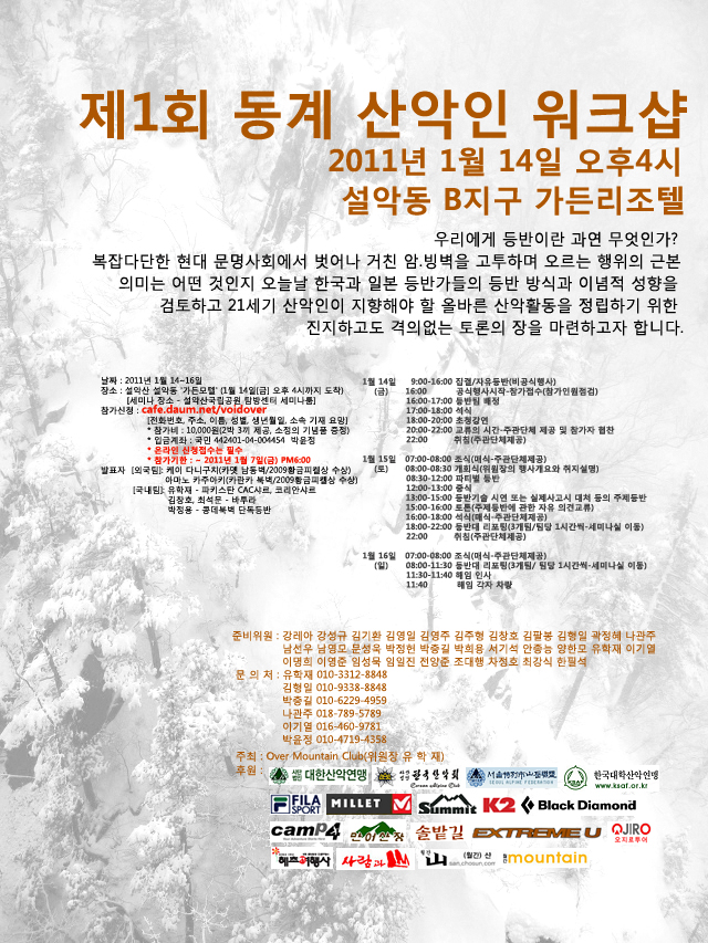 2011년 제1회 동계 산악인 워크샵 안내