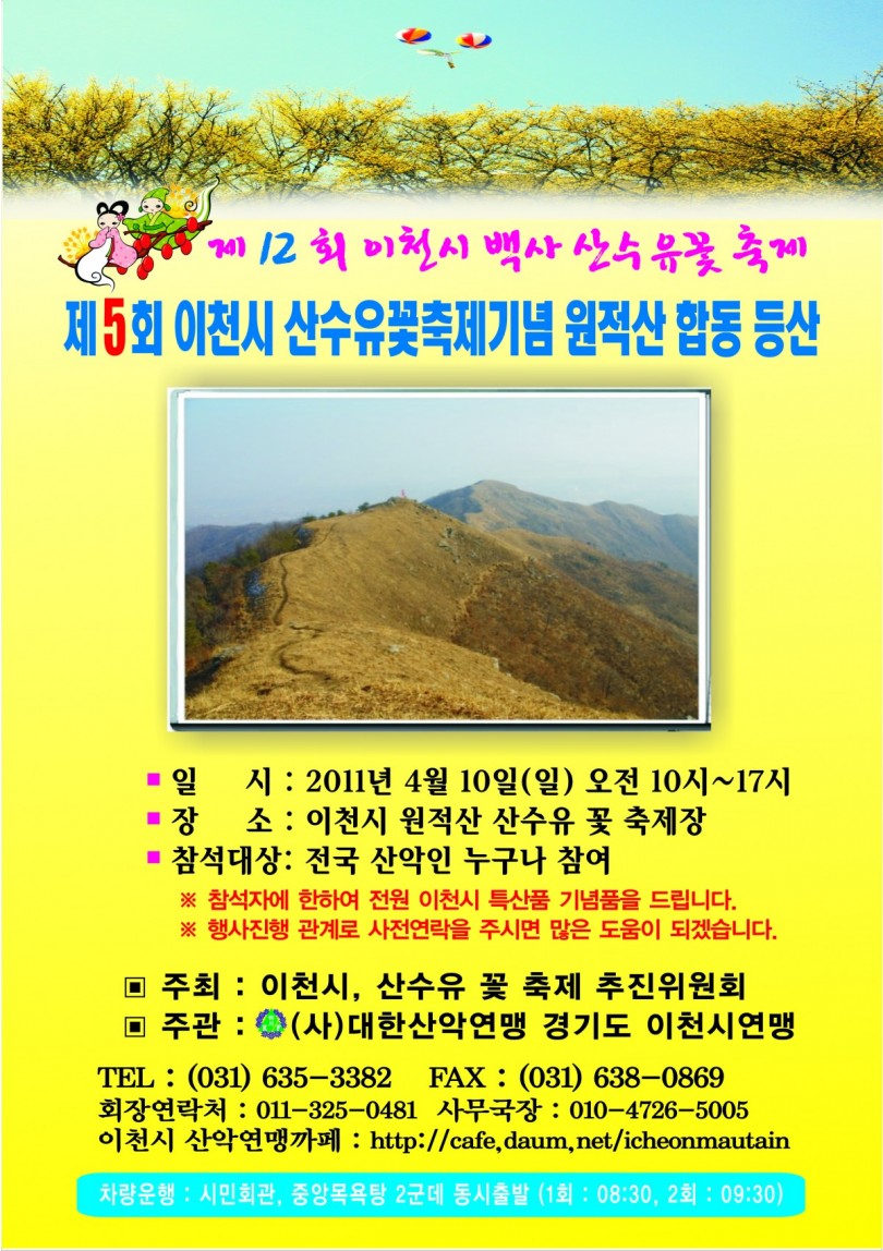이천시 산수유꽃 축제 및 원적산 등산대회 초대합니다